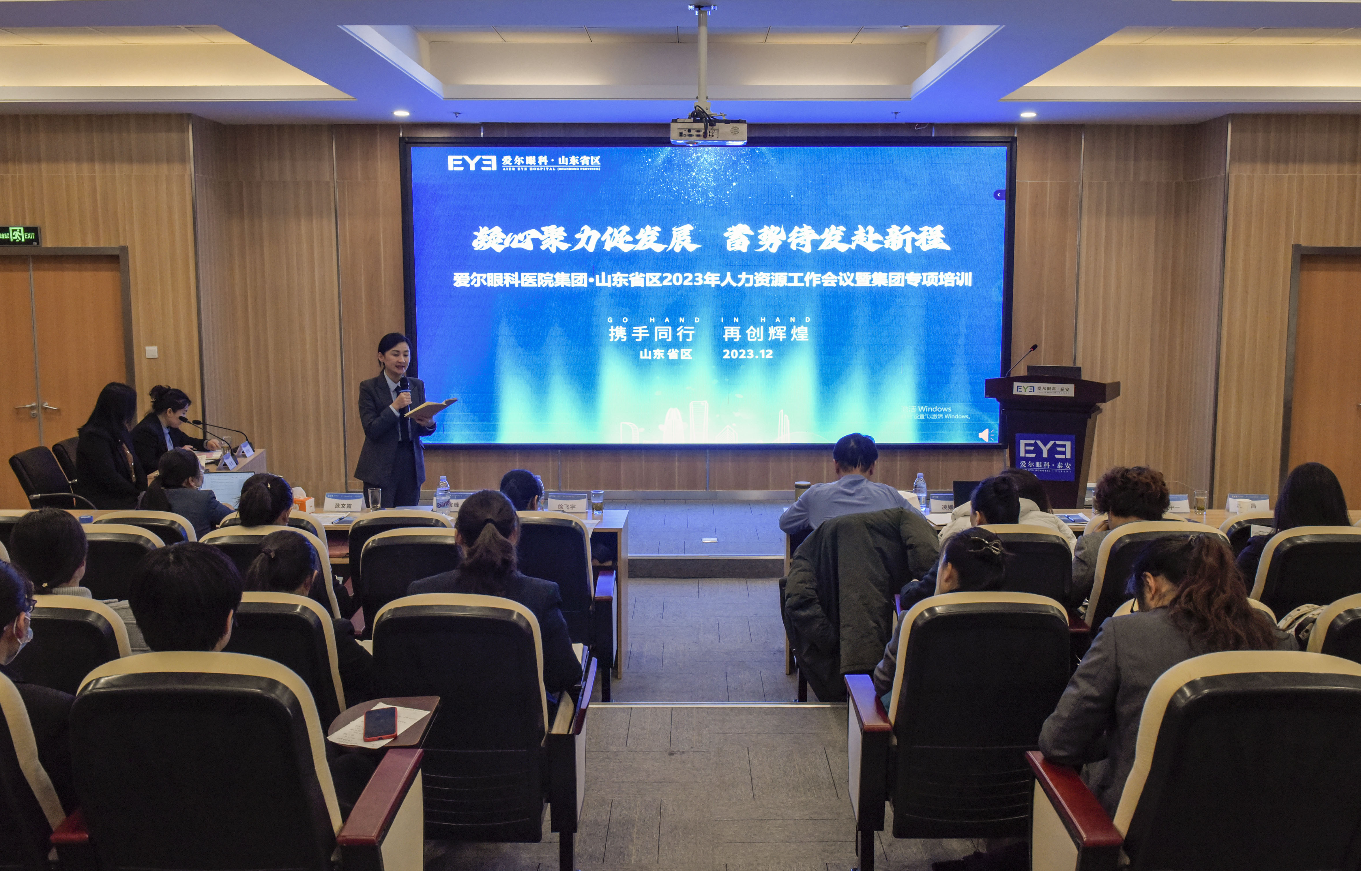? ? ?本次會議得到山東省區(qū)CEO包樓軍先生的重視與支持,愛爾眼科集團人資部經理徐飛宇女士,集團醫(yī)院人資指導部副經理毛寅鋒先生,省區(qū)人力資源總監(jiān)凌媛媛女士,泰安光明愛爾CEO楊敬昌先生,威海愛爾CEO戚中一先生和地級市各醫(yī)院人資負責人蒞臨本次會議,同時集團領導線上遠程參會。